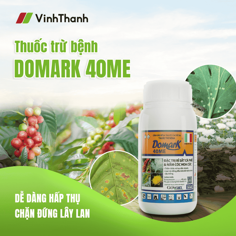 DOMARK® 40ME đặc trị bệnh rỉ sắt hại cà phê và nấm cóc hoa cúc.