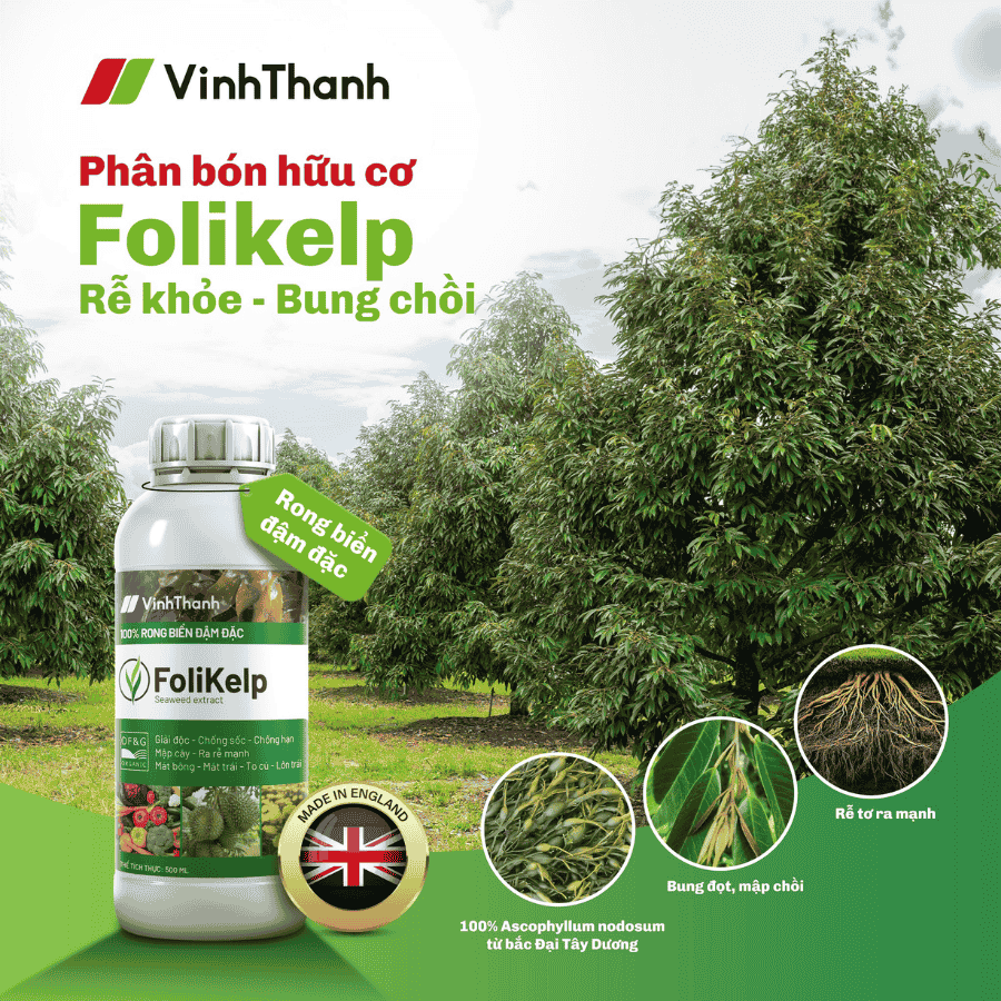 FOLIKELP là chiết xuất rong biển đậm đặc giúp cung cấp các dinh dưỡng vi lượng, vitamin, amino acid và các chất điều hòa sinh trưởng tự nhiên. FOLIKELP giúp cây trồng phát triển toàn diện và tăng sức đề kháng chống lại mọi điều kiện khắc nghiệt của thời tiết.