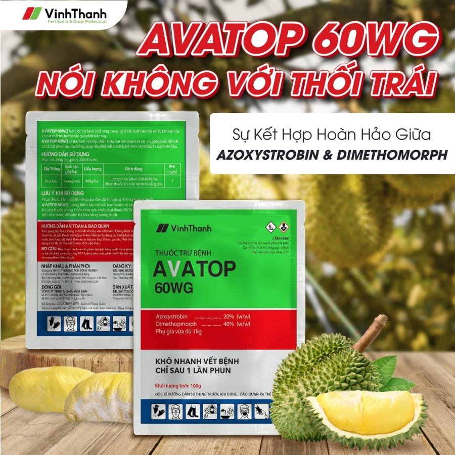 AVATOP 60WG có đặc tính nội hấp, thẩm thấu, lưu dẫn mạnh và vận chuyển thuốc đến tất cả các bộ phận của cây trồng. Giúp tiêu diệt, kiểm soát bệnh trên cây trồng một cách hoàn hảo.